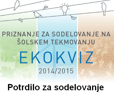 | poročilo o šolskem tekmovanju, poimenska prijava tekmovalcev | 13.2.2015 | po elektronski pošti na naslov info@ekosola.si |