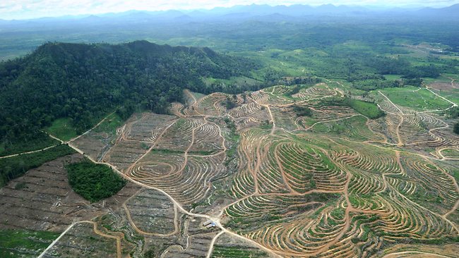 Za potrebe plantaž, kjer izdelujejo palmovo olje, v tropskem pasu na veliko krčijo gozdove. ![]() |