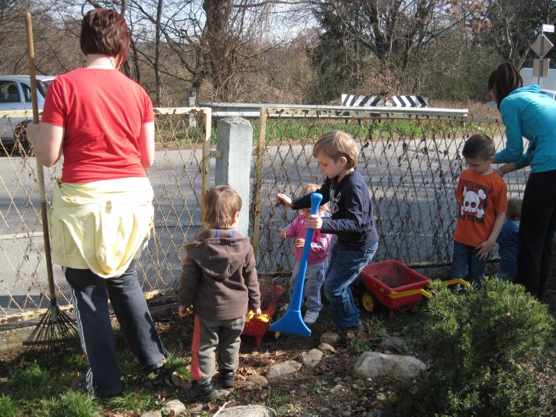 Skupaj s starši smo se lotili pomladanskega čiščenja igrišča in okolice. Otroci, tisti drugega starostnega obdobja, že zelo dobro vedo zakaj je čisto okolje zelo pomembno in so velik zgled najmlajšim otrokom, ki so jim priskočili na pomoč.
