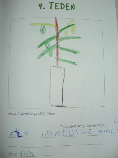- metoda pogovora: otroci so sodelovali vsakodnevno v pogovoru o posajenih semenih fižola;