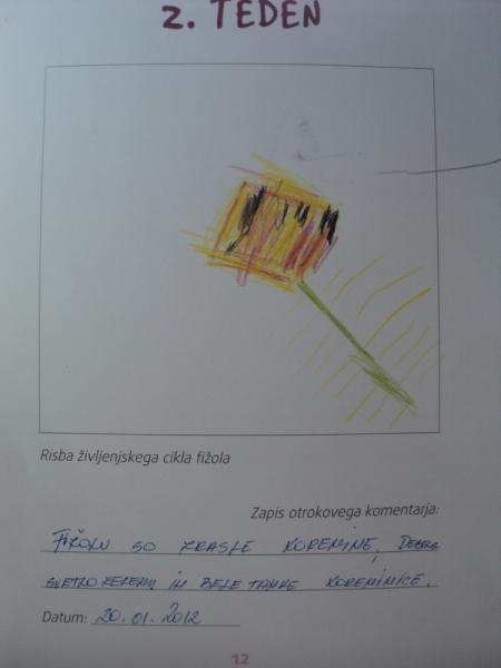 V zimskem času so otroci posadili vsak svoj fižol v lonček in spremljali rast, spremembe trinajst tednov. Opažene spremembe so z besedo in risbo tedensko beležili v dnevnik Ekokotiček za moj fižolček.