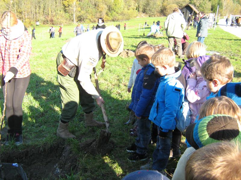 Z navdušenjem smo opazovali, kako so taborniki sadili drevje. Njihov Starešina T. DeCosta, nam je demonstriral sajenje jablane. Mi pa smo pomagali z iskanjem črvičkov za boljšo rast.