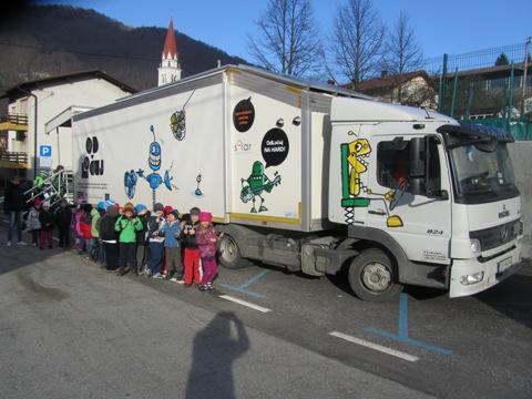 Otroci vrtca so prve vtise o vozilu strnili kar v pesmico:
