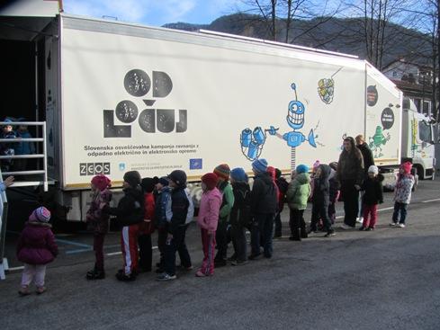 Teden dni pred prihodom "E-transformerja" smo organizirali zbiralno akcijo malih in večjih odpadnih aparatov, baterij in sijalk. K sodelovanju smo povabili otroke, starše in krajane. Z zanimivimi in poučnimi vsebinami ter ogledom multimedijskega vozila, opremljenega s fotovoltaično elektrarno, smo tako seznanili otroke o pomenu in pravilnem ravnanju z E-odpadki.