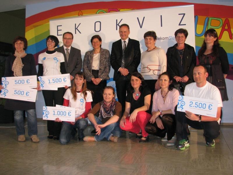Soorganizator Ekokviza Telekom Slovenije, ki že peto leto omogoča organizacijo in izvedbo Ekokviza prek spleta, je zmagovalnim šolam tudi letos namenil ekodonacije v skupni višini 6.000 evrov. Šole bodo donacije namenile naložbam, s katerimi bodo še bolj prijazne do okolja. Podpredsednik uprave Telekoma Slovenije mag. Zoran Vehovar je letošnje tekmovanje komentiral: »V Telekomu Slovenije imamo v svoje poslovne procese in dolgoročno strategijo delovanja vgrajene vse vrednote trajnostnega razvoja, ki jih bogatimo tudi s projekti na področju izobraževanja in varovanja okolja. Med njimi je zelo pomemben tudi Ekokviz, s katerim želimo poudariti, da se nam zdi najpomembnejše, da se z odgovornim odnosom do okolja seznanijo in izobrazijo že naši najmlajši. Verjamemo, da tudi na ta način naše delovanje pušča pozitivne in spodbudne sledi v okolju, v katerem delujemo,« in dodal, da se vsako leto znova veselijo vedno večjega števila tekmovalcev. »Prepričani smo, da s tem spreminjamo tudi svet, saj pridobljeno znanje oblikuje njihov pogled na svet, vrednote in s tem njihovo ravnanje«.