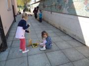 V aprilu smo izvedli obsežnejšo čistilno akcijo, kjer smo očistili dvorišče, igrišče in bližnjo okolico vrtca. Otroci so aktivno sodelovali: pobirali so suhe vejice od dreves, grabili po igrišču, pometali, odstranjevali plevel, pobirali smeti. Vključeni so bili vsi otroci iz enote v starosti od 3-6 let. Vsak je po svojih močeh pomagal. Ob tem so razvijali svojo ekološko občutljivost za ekološko problematiko.