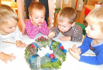 V vrtcu Ringaraja pri Oš Artiče so v skupini Rožice (1-3 let) ustvarili praznično dekoracijo, tako tudi praznične šopke in adventni venček.Otroci so pomagali zelenje dajati v lončke in ustvarjati prijetno dekoracijo za na mize.Pri tem so tipali različno zelenje: smrečje, vejice, ciprese... in ugotavljali kaj od tega pika v prstke in kaj je bolj nežno.