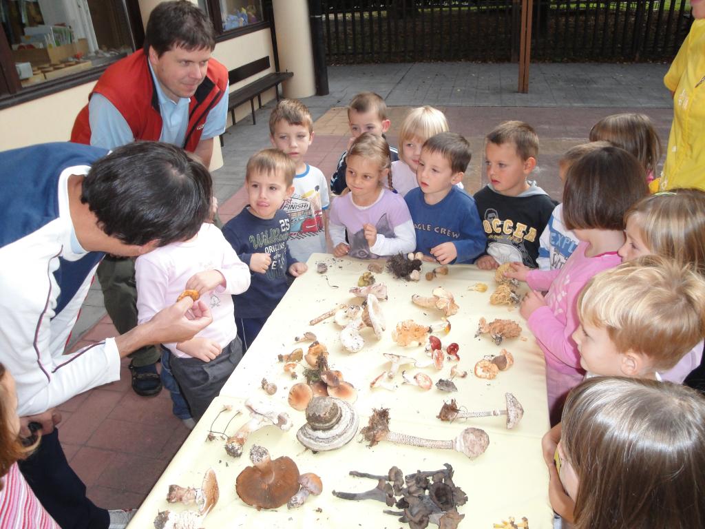 V jesenskih mesecih, ki se počasi že umikajo, smo tolminski otroci iz skupine Medvedek spoznavali gobe. Razstavo nam je pripravil eden od staršev, ki je gobar. Predstavil nam je to dejavnost in pokazal gobe, ki jih je nabral v gozdu. Ogledali smo si več različnih gob in se o njih pogovarjali. Pri tem smo jih lahko vohali, otipavali in jih primerjali med seboj. Spoznali smo užitne in neužitne gobe.