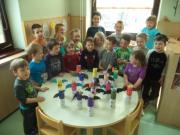 Ogledali smo si tudi kratek film, ki nazorno prikazuje recikliranje in predelavo odpadkov; pretopitev plastike in papirja. Veliko smo se pogovarjali o tem, da lahko odpadke ponovno uporabimo, zato smo iz njih tudi ustvarjali. S predstavnicama Slovenskega društva za proučevanje in varstvo netopirjev smo izdelovali netopirje, ki so jih otroci kasneje uporabili kot zamaškojede, v katerih so v vrtec prinašali plastične zamaške. Poleg tega smo izdelovali modne kreacije, ki so jih sestavljala oblačila in modni dodatki, s katerimi smo se predstavili na prireditvi ob Dnevu zemlje, ki je potekala na Glavnem trgu v Novem mestu. V sklopu UHU-jevega kreativnega natečaja "Ustvarite svoje drevo", pa smo iz odpadnih in naravnih materialov izdelali pomladno drevo, ki krasi naš vrtec.