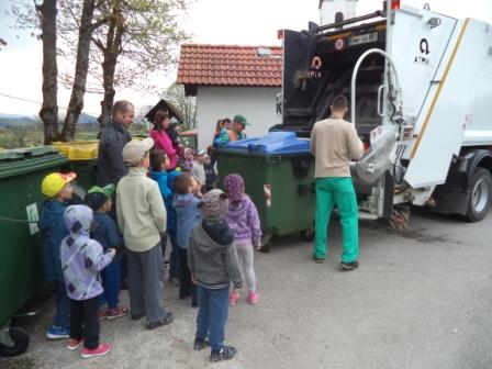 Poleg dejavnosti, ki smo jih izvajali tekom leta, smo otroci in vzgojiteljici skupine Miške, enota Dolž, tej tematiki posvetili posebno pozornost prav v mesecu aprilu. V sodelovanju s starši smo zbirali star papir, zamaške in baterije, izvedli smo čistilno akcijo, v sklopu katere smo skupaj z vzgojiteljicami in otroci iz skupine Piščančki uredili in očistili okolico vrtca in šole ter uredili cvetlične gredice, seznanili smo se, kako in kam pravilno odlagamo odpadke, kdo in kam jih odvaža ... V sodelovanju s Komunalo Novo mesto smo si ogledali praznjenje zabojnikov za steklo in papir ter z očetom, zaposlenim v tamkajšnjem podjetju, izvedli delavnico na temo ločevanja odpadkov.