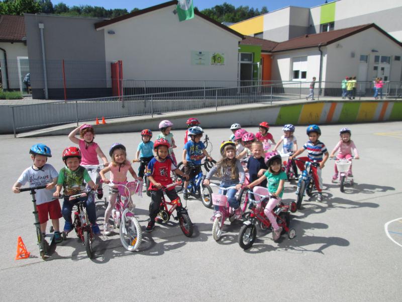 V skupini drugega starostnega obdobja pa so otroci kolesa pripeljali kar od doma. Vsak otrok je poskrbel za svojo varnost z uporabo kolesarske čelade in upoštevanjem pravil varne vožnje s kolesom.