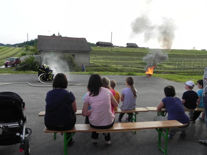 Za otroke so gasilci pripravili štiri gasilsko-vodne igre, ki smo jih poimenovali vodne igrarije. Otroci so se preizkusili v teku, spajanju gasilskih cevi in prenašanju vode. Skupaj s starši pa so tekmovali v igri zbijanja tarče. Vsi so v igrah neizmerno uživali. Pokazali so nam še gašenje z vodnim topom. Vse gledalce so neizmerno navdušili. Sledil je postroj naših najmlajših, kjer so prejeli medalje za sodelovanje v vodnih igrarijah. Ob koncu našega druženja smo se tudi malo posladkali in poklepetali.