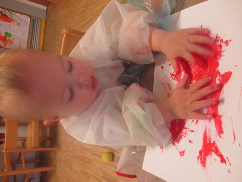 Ob ustvarjanju so otroci neizmerno uživali, packali, opazovali svoje prstke, roke, čebelico na fotografiji; se čudili vzorcem na papirju, nekateri so se tako prvič srečali z barvo na prskih in veselje je bilo še večje.