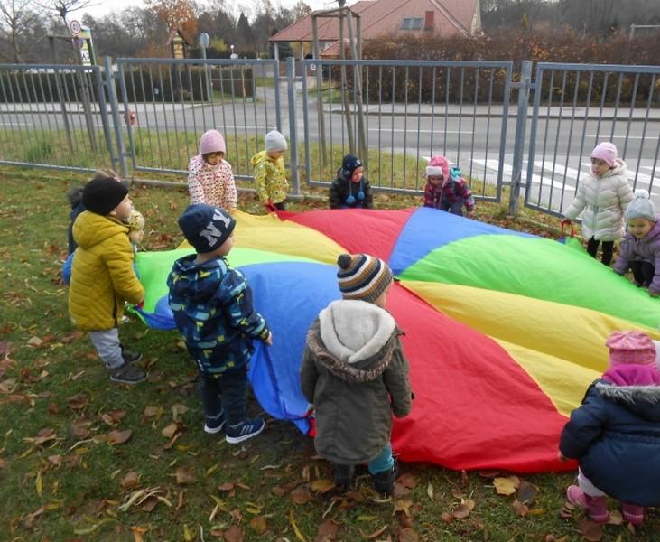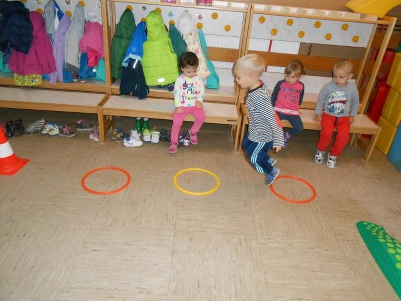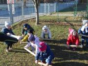 Ob lepem in toplem vremenu smo poskrbeli tudi za gibanje na našem vrtčevskem igrišču ter v samem oddelku in garderobi, ob pomoči različnih športnih rekvizitov.