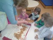 Zato smo v mesecu marcu še posebej posvetili pozornost zdravju in družini. V oddelek 1 smo povabili babico enega izmed otrok, ki je z nami delala jabolčni zavitek. Otrokom je bilo zanimivo lupljenje jabolk. Pri dejavnosti so bili aktivni, saj so podajali cela jabolka babici ter naribana jabolka dajali na testo. Zavitek smo skupaj z otroki nesli v kuhinjo spečt ter ga kasneje poskusili. Nekateri so bili nad zavitkom navdušeni in so hoteli še, drugi pa niso bili preveč navdušeni in so raje jedli kruh.