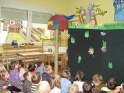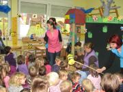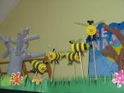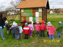 V mesecu novembru smo v skupini IV, starosti otrok od 3 – 4 let, spoznavali pomen čebel za nas in naše okolje. V ta namen smo otrokom na različne načine in z raznolikimi sredstvi želele čim bolj približati vlogo čebel v naravi. Zato smo se v skupini veliko pogovarjali o čebelah, kje živijo, kaj delajo, za kaj so pomembne. Spoznavali smo, da imajo čebele tako kot ljudje različne vloge (poklice), ki jih opravljajo čez dan. Izdelovali smo čebele in si naredili velik čebelnjak, ki smo si ga predhodno ogledali v bližnji okolici vrtca. Veliko smo se pogovarjali o zdravilnih značilnostih medu, v ta namen smo ponudile otrokom različne vrste medu, ki so jih otroci primerjali med seboj po barvi, gostoti in predvsem po okusu. Spoznali smo veliko medenih izdelkov in izdelkov iz voska. Pripravili smo si medeni zajtrk in pekli medenjake. Naučili smo se pesem o čebelicah ter se igrali gibalni in rajalni igri Čebele v panj in Medved in čebele. Poslušali smo pravljico Ko bom velik bom čebelar. Spoznali smo poklic čebelarja, njegovo zaščitno obleko in naloge, ki jih opravlja. Pobližje smo si ogledali tudi satnico. Ko smo vse te dejavnosti izvedli in se s pomočjo njih tudi nekaj novega naučili smo za vse otroke vrtca izdelali vabilo v obliki čebelnjaka na lutkovno igrico Dežela Medelandija. Za posladek pa smo ob koncu igrice vzgojiteljice ponudile otrokom kruh namazan z medom.