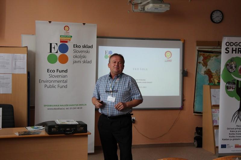 V prvem delu srečanja je potekala predstavitev Učinkovite rabe energije in obnovljivih virov energije,  strokovnjaka iz mreže ENSVET, ki je predstavil inovativno izobraževanje in tehnološka orodja za učinkovito rabo energije. Udeležencem je bila predstavljena tudi možnost sodelovanja šol z mrežo ENSVET ter različne finančne spodbude okoljskih naložb, ki jih ponuja Eko sklad, slovenski okoljski javni sklad.  Poleg ugodnih posojil, subvencij in ozaveščanja Eko sklad izvaja tudi brezplačna energetska svetovanja za občane in javne ustanove. Program energetskega svetovanja ENSVET omogoča brezplačne strokovne nasvete in razgovore o naložbah v URE ter OVE tako za zasebne kot tudi za javne ustanove.