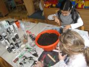Vsak otrok si je po navodilu v dnevniku posadil 2 fižolovi zrni v lonček, ki ga bo opazoval v vrtcu in 2 fižolovi zrni v lonček, ki ga bo odnesel domov in ga doma tudi opazoval.