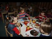 Na dan pred "Tradicionalnim slovenskim zajtrkom" smo si z otroki ogledali film "Kranjska sivka" in obudili naša vedenja o čebelah ter skrbi zanje, ki smo jih pridobili v projektu "Čebelica od kod in kam". Obiskali smo tudi čebelarski center na Brdu pri Lukovici. Otroci so poslikali pogrinjke z motivi čebel in izdelali svečke iz čebeljega voska.